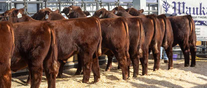 The bulls in this group exhibit superior performance even compared to previous ones. Efforts have been made to ensure that mature weight remains controlled and reasonable. This process required patience and unwavering commitment, as we did not compromise growth during the adjustment period. This group also includes a higher proportion of highmarbling genetics. Selections were meticulously made, and new genetics were introduced without sacrificing muscle for increased intramuscular fat content. Focus on structural soundness, maternal instincts and fleshing ability remains a priority at Waukaru. As always, our cows are expected to perform consistently every day.