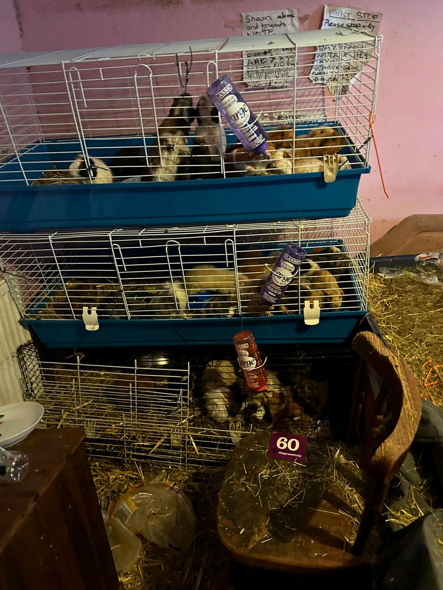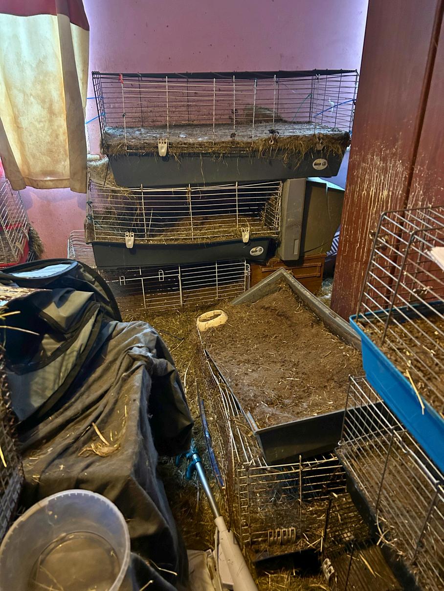 it’s hard to imagine how the animals must have felt being in that environment constantly. The downstairs areas were completely full of all different species of animals ranging from rabbits, tortoises, cats, guinea pigs and birds, all living in tiny filthy cages with no food or water source. We didn't realise that upstairs were even more neglected pets living in worse conditions. Guinea pigs were living in stacked cages on top of each other, their only bedding was their own waste and they were frantically fighting over the water bottles when we filled them up before transporting them back to the shelter.