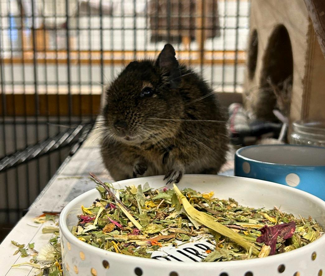 Many years ago, degus were the sought-after “new” species for families to adopt, but fortunately, they have become a rarity these days. Don’t get me wrong; I absolutely love interacting with them at the shelter, but I dislike the thought of what happens to them before they reach us