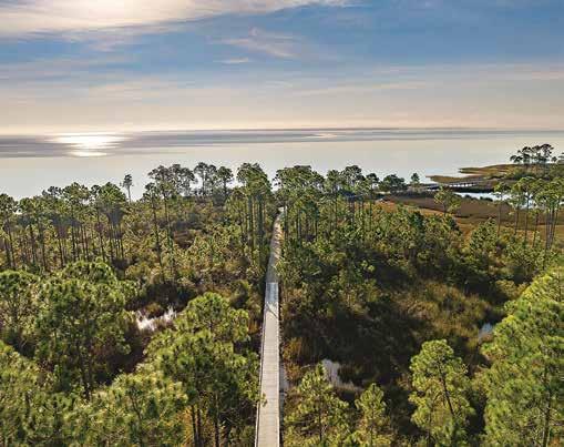 OPPOSITE PAGE Top Row : Watersound ® Town Center Pavilion, Watersound Beach Club, Panama City Beach Conservation Park. Middle Row: Watersound Bonfire, Gulf of Mexico, Watersound Beach Club. Bottom Row: Aaron Bessant Park, Shark’s Tooth Golf Course, Fish Out of Water Restaurant. THIS PAGE Watersound Origins ® Community, Watersound Monarch Art Trail.