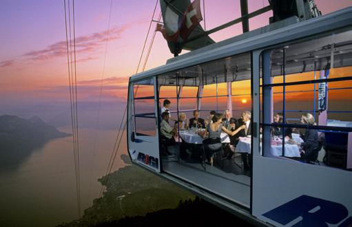 Kaltbad se transforme en restaurant panoramique avec une vue à couper le souffle. Un menu 3 plats est servi entre ciel et terre durant un trajet exceptionnel. Groupes de 37 personnes maximum pour cette expérience unique. www.rigi.ch