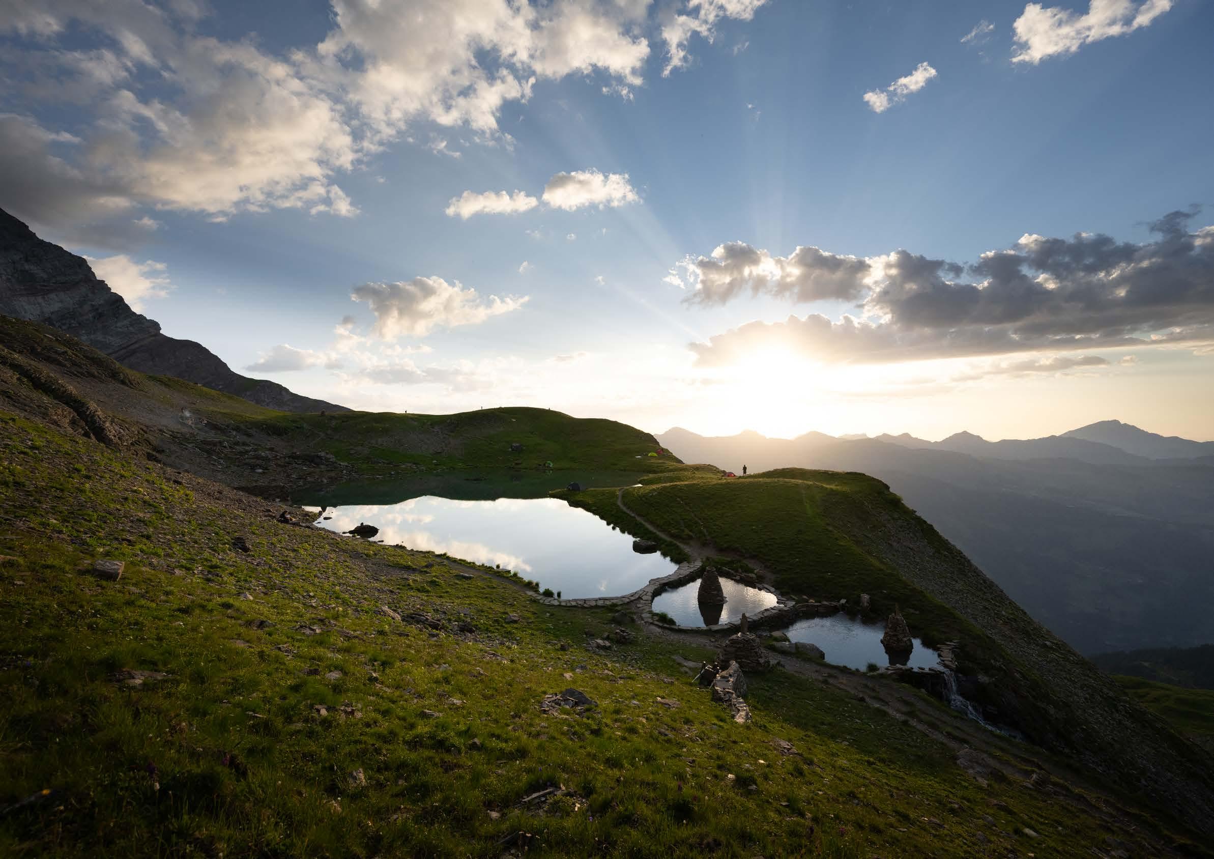 Champoussin est situé au cœur d’un cirque de montagne exceptionnel et de là, on regarde les Dents du Midi droit dans les yeux. Lieu paisible vibrant d’authenticité, il convient de prendre le temps d’y flâner et de se disputer le plaisir de saluer marmottes, chèvres et vaches… car en été, les animaux seront vos plus proches voisins. Ponctuant les pelouses verdoyantes de l’alpage, de nombreuses zones humides abritent une végétation abondante. La nature y est opulente, et la tranquillité des lieux promet des instants de ressourcement hors du temps.