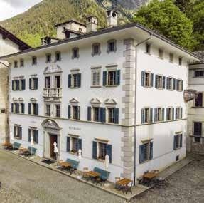 HOTEL WEISS KREUZ In Splügen, der Siedlung am Beginn des Passübergangs auf der Schweizer Seite, stand bereits im 14. Jahrhundert eine Herberge. Sie war lange Zeit ein bevorzugtes Gebäude am stark benützten Saumweg.