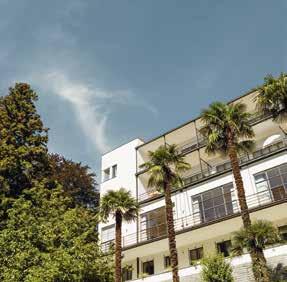 HOTEL MONTE VERITÀ Das Hotel auf dem Monte Verità, dem «Berg der Wahrheit» oberhalb von Ascona, ist eines dieser wenigen Häuser im Stil des «Neuen Bauens» in der Schweiz. Der Ort auf dem Hügel bei Ascona war bereits um 1900 als Sitz einer Künstlerkolonie mit lebensreformerischem Ziel und antikapitalistischen Idealen bekannt geworden. Gemeinsam verrichteten die Gründer in Reformkleidern und mit langen Haaren Garten und Feldarbeit oder suchten Entspannung beim Nacktbaden.