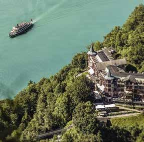 Die Hotelresidenz im typischen BelleÉpoque-Stil thront über dem Brienzersee. Die älteste Standseilbahn Europas führt von der Schiffstation in die NostalgieOase. Unweit des ruhigen Hotels tost der Giessbach-Wasserfall, eine beeindruckende Kraftquelle.