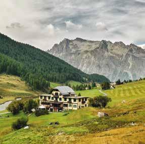 Staying at this noble mountain hotel from 1896 is like a journey through time to the heyday of Alpine mountaineering. The family-run hotel with its stone and timber façade lies in the heart of a stone pine forest amidst the impressive mountains, awakening a new thirst for adventure.