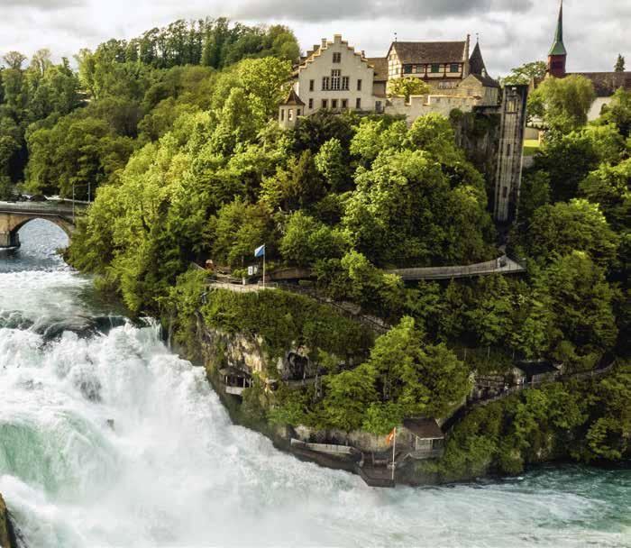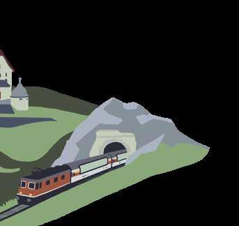 Suiza tiene la red de transpor te más densa del mundo: 29 000 kilómetros por carre tera, sobre raíles y por agua.