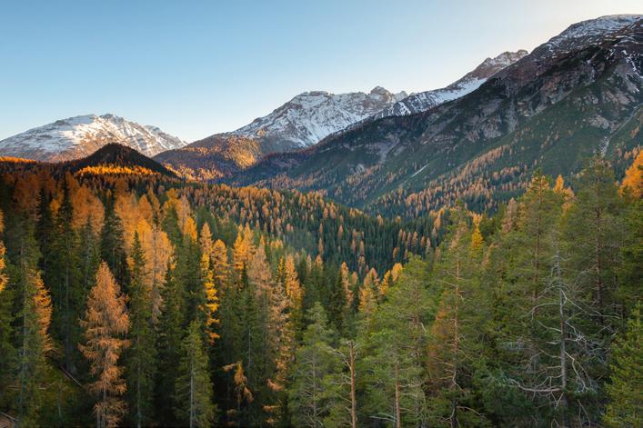 • Feel the golden autumn season with all senses: When the larch trees along the rugged Alpine valleys gradually turn golden and the Alpine chamois wrap themselves in their winter clothes, the season of the senses is in full swing. Colorful autumn hikes are a feast for the eyes and harvest-ripe chestnuts and fragrant mushroom dishes a treat for the palate.