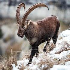 Der Steinbock ist ein echter Winterkletterer – er bewegt sich sicher auf vereisten Felsen und nutzt steile Hänge, um Schnee und Fressfeinden zu entkommen.