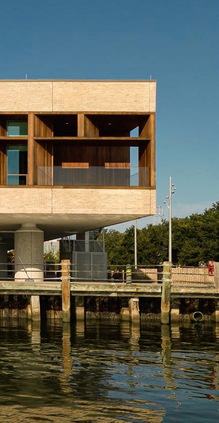 Did you decide right at the start to use brick for the museum’s façades, or did you consider other materials? During the concept phase, we explored several cladding options for the museum’s façades. Initially, we settled on a natural stone rainscreen system featuring an African granite, which we presented to both the IAAM Board and the Charleston Board of Architectural Review. However, as we progressed into schematic design and refined the cost estimates, we collectively decided to switch to a brick rainscreen system. Brick not only aligned more closely with our aesthetic goals but also proved to be more cost-efficient.
