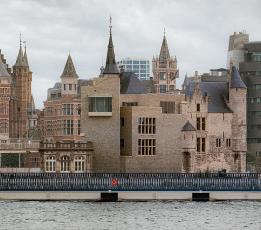 Het Steen in Antwerpen, Belgien, entworfen von noAarchitecten und erbaut in Abstufungen von D55, D96, D54, D51, D90 und D190, geliefert in 17 verschiedenen Mischungen. Das Projekt wurde 2024 für den Mies van der Rohe Award nominiert. Foto: Kim Zwarts.