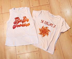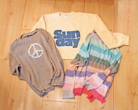 Kerisma Wing-sleeved Red Sweater and a Chaser Rainbow Lip Bite Smooch White T-shirt.