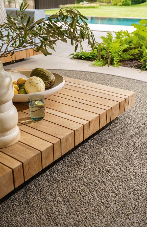THE MATERIAL IS ROBUST, STANDING STEADFAST AGAINST ANY-AND-ALL WEATHERING INFLUENCES AND IS EASY TO CARE FOR, MAKING IT IDEAL FOR PRIVATE INTERIOR AND EXTERIOR AREAS AS WELL AS FOR MUCH-VISITED HOTEL, POOL AND WELL-BEING AREAS.