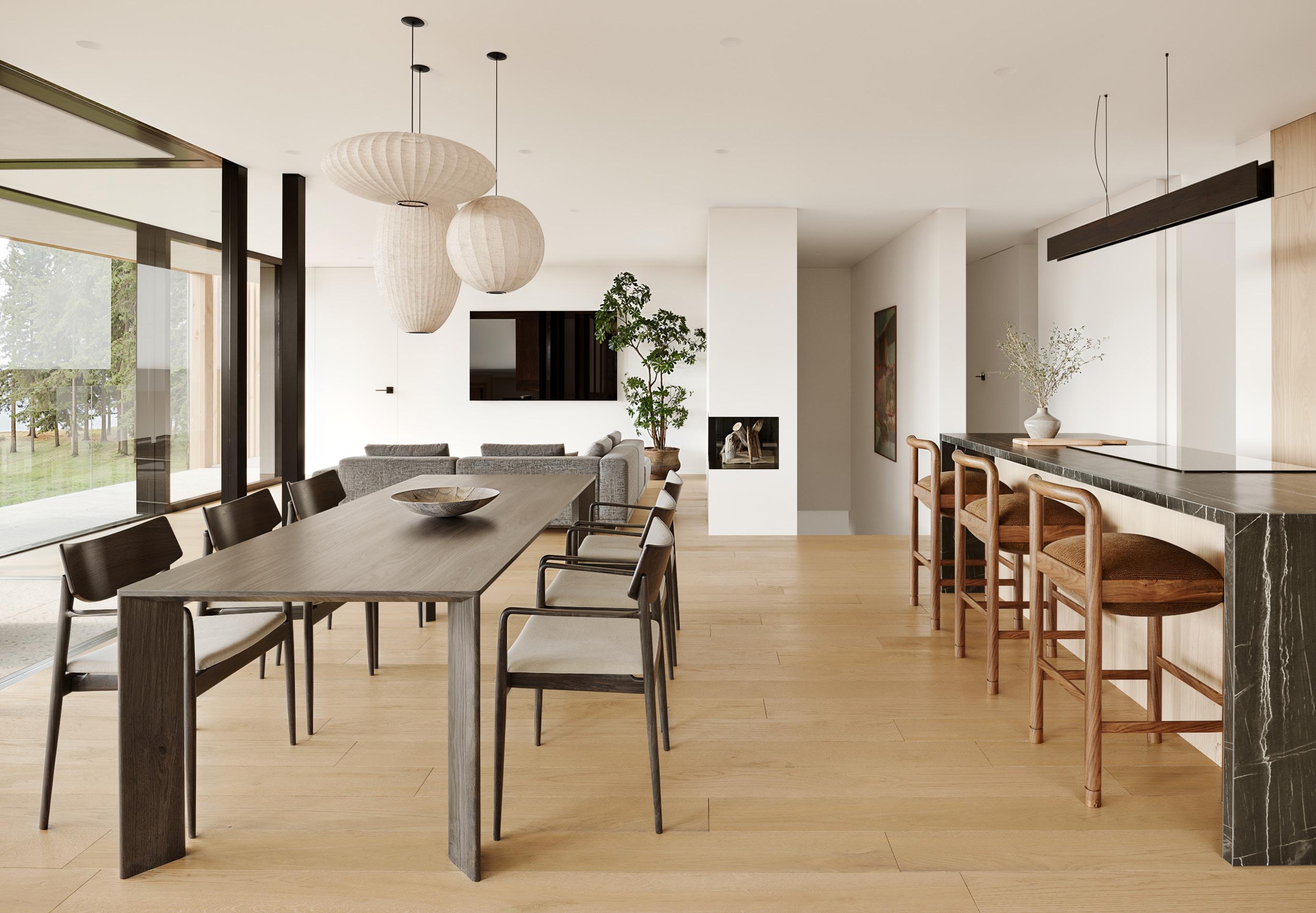 DIE STILVOLLE UND NATURVERBUNDENE BAUWEISE SETZT SICH IN DER EINRICHTUNG FORT.