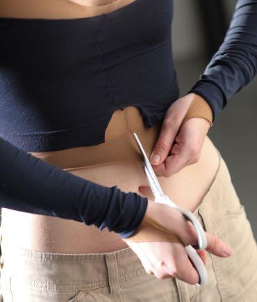 2. Cut the crotch out of the pantyhose big enough to t your head in, as you need to be able to put it on through this hole.