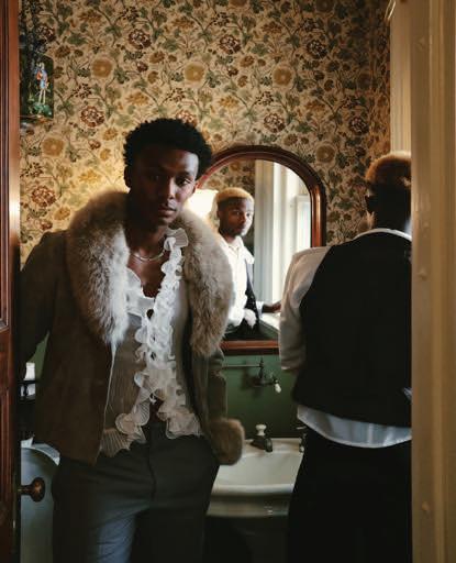 balances antiquity with this subtle vi brance that feels contemporary. e main dining room feels like the set for So a Coppola’s Marie Antionette, designed for high tea and a dance party. To compli ment and contrast the scene, models wore modern renditions of Rococo era garments. e energy in the mansion was so alive as models swayed to Frank Sina tra being played over the sound system.