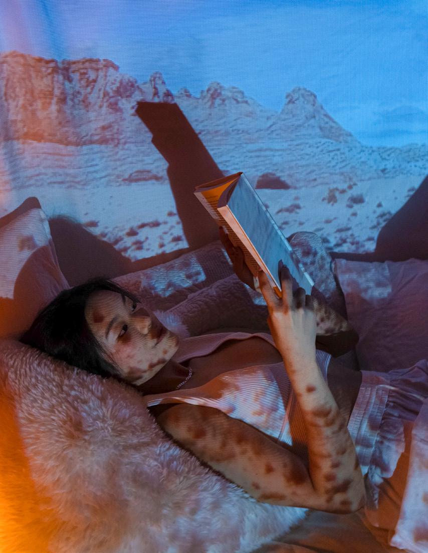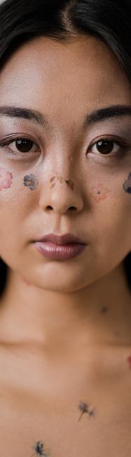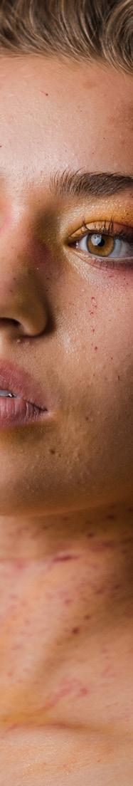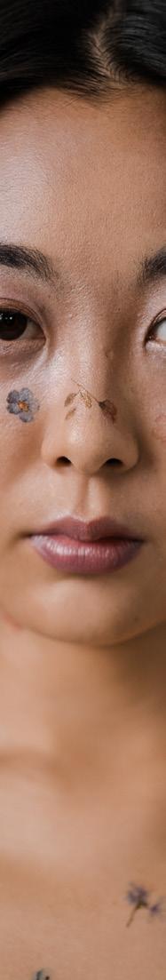 t is human nature to define ourselves on the basis of how others perceive us. We put up a front to be the person that meets expec tations. It is in the abandonment of this facade that we truly find who we are, and who we can become. Growth is determining our true iden tity, and expanding upon it as we learn more about ourselves. While it is necessary to let certain aspects of ourselves go as we change, our past experiences and traits remain in ev ery evolution of our personality. Elements of playfulness and nostalgia, with added edge, convey the influence that our past has in our continued development. Colorful makeup and editing express a feeling of individuality and confidence that comes from finally determin ing who you are.