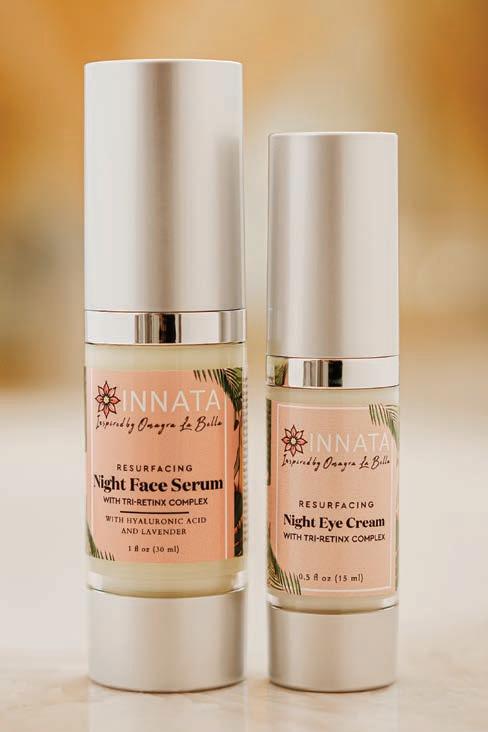 INNATA’s - Resurfacing Night Eye Cream & Resurfacing Night Face Serum both with Tri-RetinX Complex™ which is a blend of natural retinol alternatives that help diminish fine lines, wrinkles, and improve skin texture without irritation. This proprietary blend delivers potent results and has an anti-inflammatory effect on the skin.