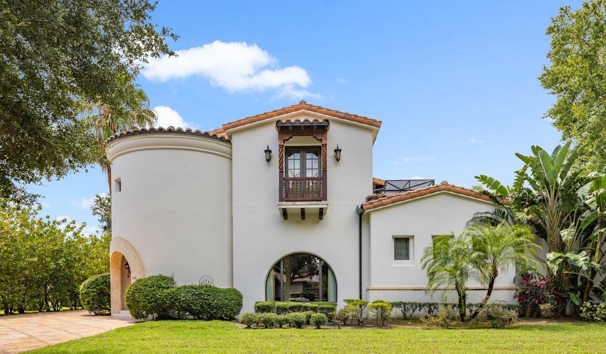 Located within the highly desired guard-gated community of Lake Butler Sound, this custom Spanish-style Hacienda estate emits a seamless blend of old-world charm and modern accoutrements. Large windows invite natural light to highlight the countless luxury accents from around the globe that fill this magnificent home. From the authentic beamed-ceiling gallery and decorative pillars from Turkey, to the impressive flooring created from imported brick from a farmhouse in France, to mosaic tiles from Lebanon, this home is a true showstopper. Other unique features include a dramatic circular staircase, underground wine tasting room, detached two-story guest house with movie theatre and three-car garage, plus a private courtyard pool with bridge and outdoor kitchen