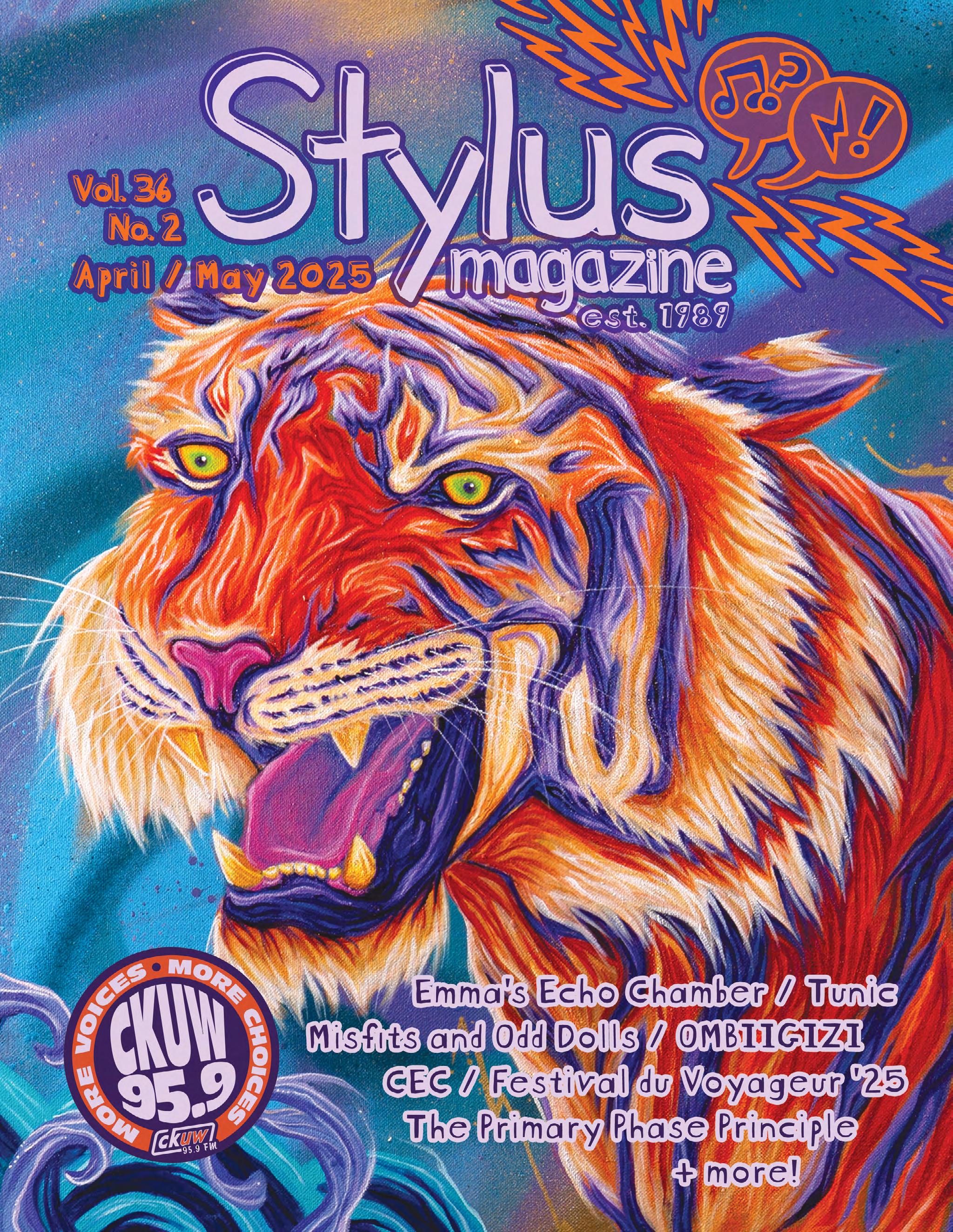 Stylus is published bi–monthly by CKUW 95 9 FM, with a circulation of 2,500 Stylus serves as the program guide to 95 9FM CKUW and will reflect the many musical communities it supports within Winnipeg and beyond Stylus strives to provide coverage of music that is not normally written about in the mainstream media Stylus acts as a vehicle for the work of new writers, photographers and artists, including members of the University of Winnipeg, of CKUW and of the Winnipeg community at large Stylus reserves the right to refuse to print material, specifically, that of a racist, homophobic or sexist nature All submissions may be edited and become the property of Stylus All opinions expressed in Stylus are those of the contributors and do not necessarily reflect those of the editors Contributions in the form of articles, reviews, letters, photos and graphics are welcome and should be sent with contact information to: