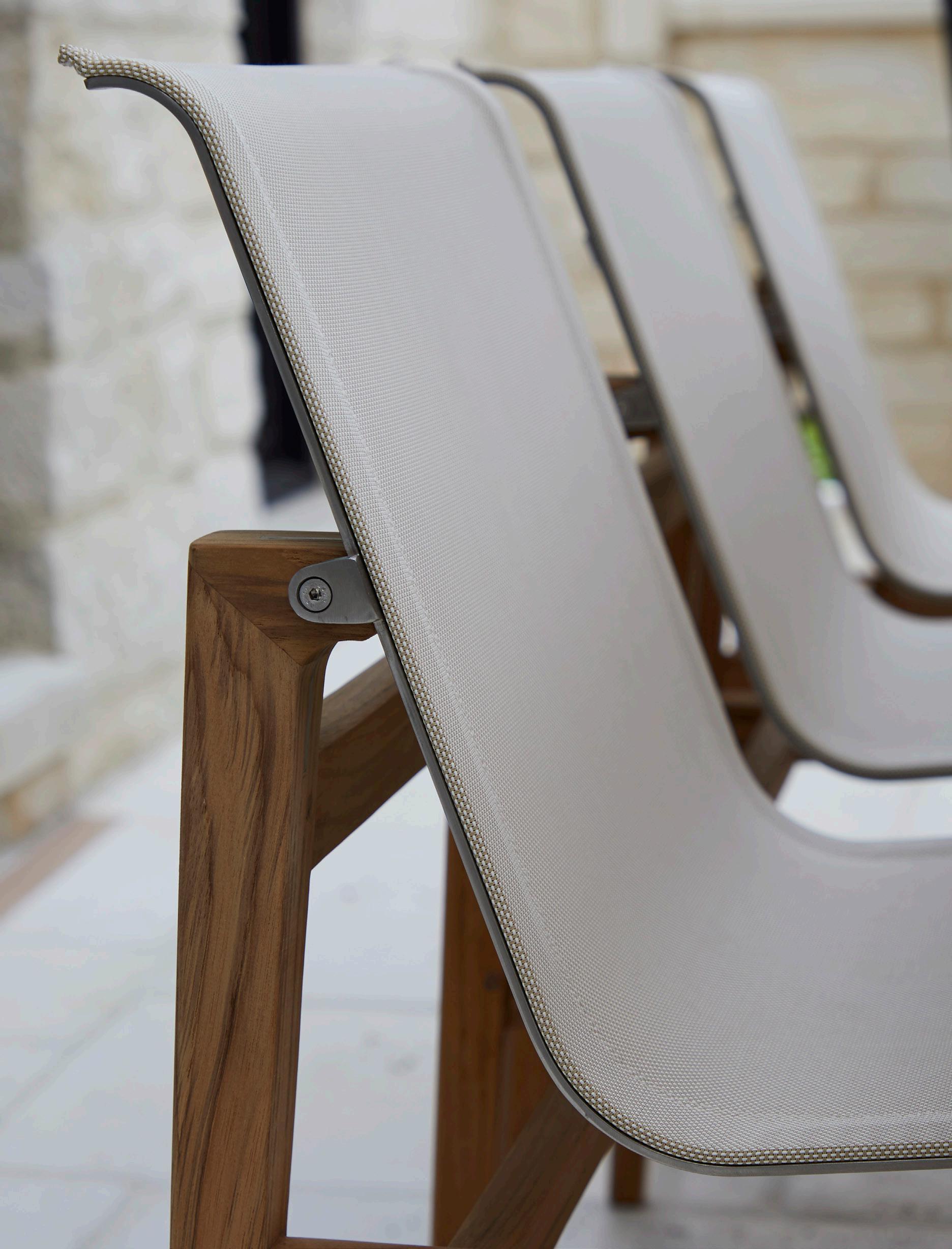 VINYLOur Batyline ® Outdoor Performance Sling features quick-dry technology for comfort soon after rain, with double the durability of standard weaves due to higher pick count. It offers superior UV and mold resistance, outlasting other fabrics in longevity and maintenance. Eco-friendly and OEKO-TEX® certified, this recyclable material meets Greenguard Gold low emission standards, making it a sustainable choice for outdoor furniture.