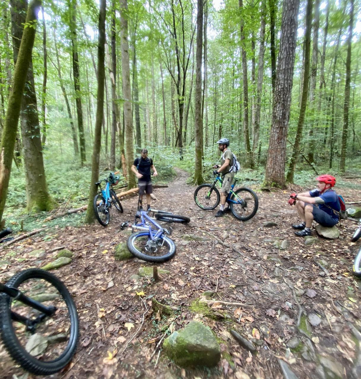 We moved as a pack of eight on this day, riding the best singletrack that Dupont State Recreational Forest has to offer (and plunging into a cold mountain stream at the end of the ride), before walking nine