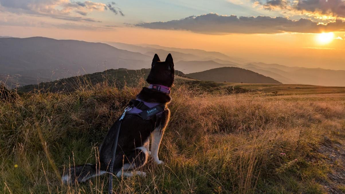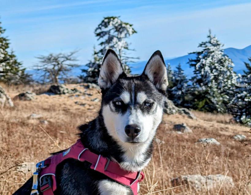 Outdoors Magazine holds the annual Adventure Critter Pet Photo Contest—sponsored by Dominion RiverRock—which calls our critterloving readers to send in top adventure photos with their furry friends. After receiving hundreds of submissions and thousands of votes between the finalists, first place went to Shelia K. Haga, who submitted an image of her adopted Siberian Husky, Sascie, enjoying the sunset at Whitetop Mountain in Virginia’s Mount Rogers National Recreation Area.