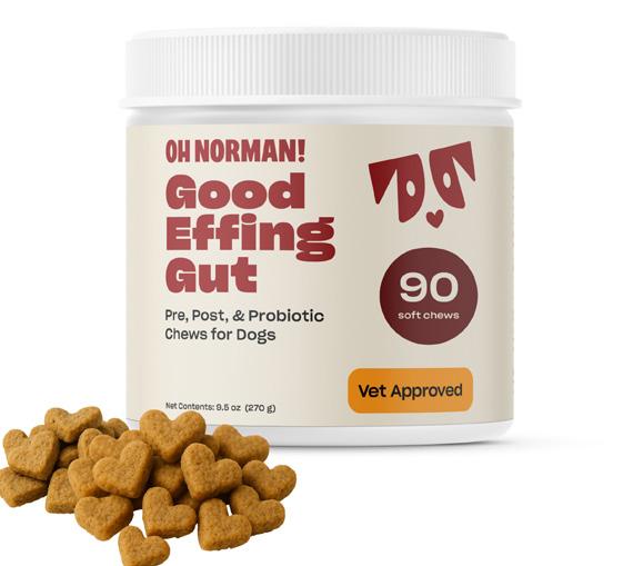 Festival food and trail snacks can wreak havoc on your pup’s digestion. These tasty supplements contain prebiotics, postbiotics, and probiotics to keep things running smooth. $35; ohnorman.com