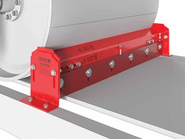 • Unique adjustable guard maintains a constant gap between the conveyor belt and guard, even when the conveyor belt is tensioned.