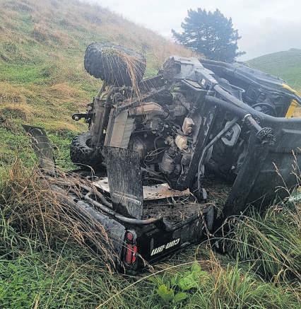 Above: Jake Stokman with some Stokman Angus bulls. Right: The aftermath of Mark’s 2024 canam accident Photos / Supplied