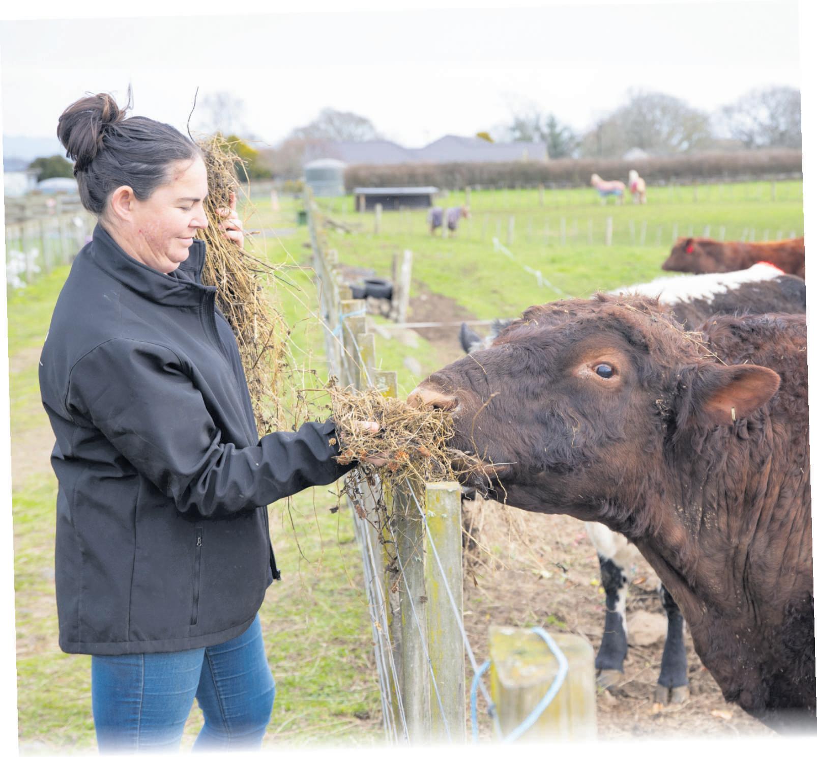 Tam y , and Bailee, 9, helping to feed the calves.