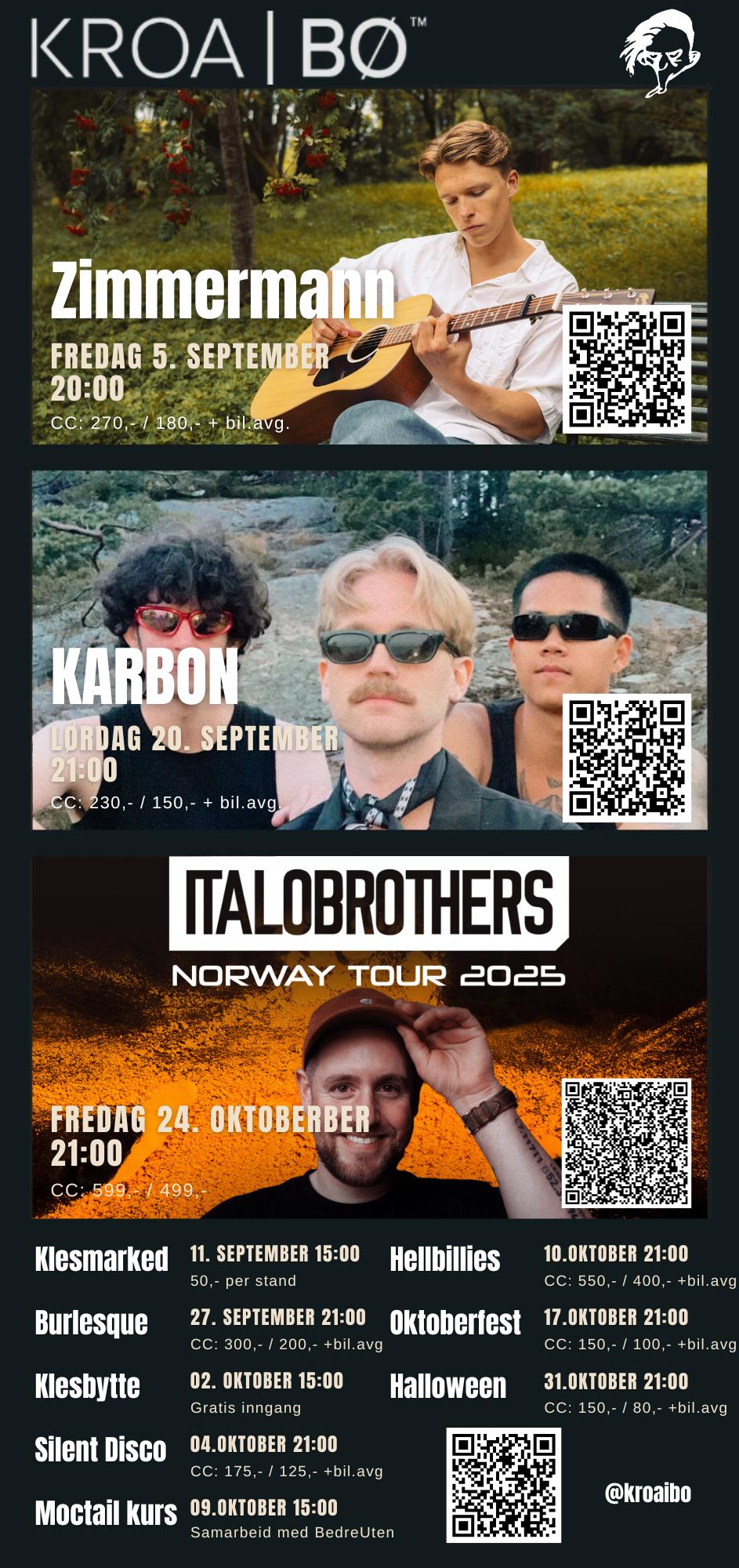 Høstens program i Bø jazzklubb består av sju konserter, fem på klubbscenen i Framstugo i Gullbring kulturhus, en på splitter ny scene på Bø hotell og en på studentscenen Kroa i Bø.