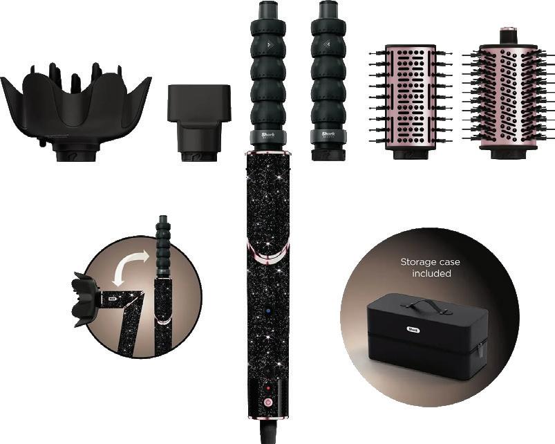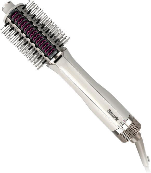 Channels hair down a V-shaped bristle to the centre of the spiral brush, where V-Shaped comb teeth smoothly untangle it ensuring effortless maintenance.