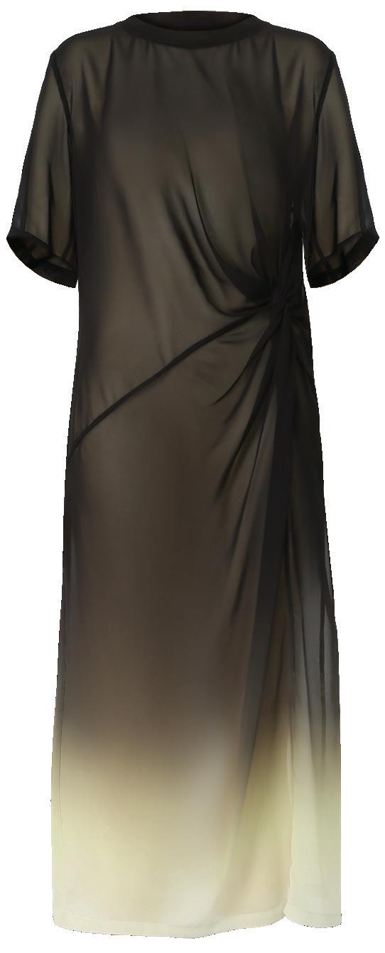 Make a statement with their newest dress on the block. The relive dress arrives in ombre citron. Your modern long midi for the season, detailed with a crew neckline, elbow length sleeves, and knot detail at the left hip.
