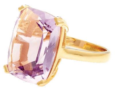If you are looking for jewellery to elevate your outfit and mood, this stunning Silk & Steel gold ring will do just that! It features a large 12.5 ct cushion-cut Brazilian amethyst, which is faceted to perfection to catch the light.