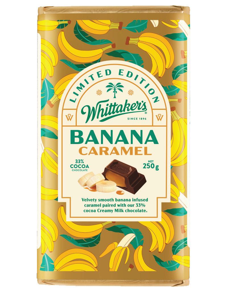 Whittaker’s has launched its new limited-edition Banana Caramel 250g block.