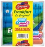(2,65€/kg) SALCHICHAS CAMPESAN CAMPOFRIO | p3x 170g (4,90€/kg) SALCHICHAS FRANKFURT CAMPOFRIO | p4x 140g (13,79€/kg) SALCHICHAS JAMONGUS CAMPOFRIO | p3x 170g (4,90€/kg) SALCHICHAS HOT DOG PAVO AIA | 1kg ANTES 6’95 € 5’95 € AHORA SALCHICHAS PAVO-POLLO C/QUESO WUDY | 150g (6,67€/kg) ANTES 1’30 € 1’00 € AHORA SALCHICHAS PAVO-POLLO CLASICA WUDY AIA | 250g (5,96€/kg) ANTES 2’30 € 1’49 € AHORA 32 % DESCUENTO 23 % DESCUENTO 14 % DESCUENTO
