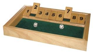 Deurtje open, deurtje dicht oftewel Shut the box is een dobbelspel voor 2 personen. De houten bak (34 x 24 x 3 cm) is bekleed met groen vilt en voorzien van de cijferreeks 1 t/m 9. Inclusief 2 dobbelstenen.