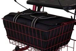 Inclusief zachtere, zwenkbare 8” PU voorwielen en 7” PU achterwielen, fleshouder, stokhouder, afneembare comfortabele rugband en een luxe moderne rollatortas met schouderband.