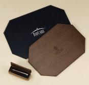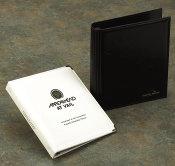 All of our leather products are made of top grain American GENUINE LEATHER, garment weight, and manufactured like no one else does. Our case bound, hand made, French Turned Covers are as good as it gets. All GENUINE LEATHER items are lined with Bengaline Moiré and have quality French Turned round corners. Black, blue, burgundy, and green are our stock colors. We can match your PMS color as custom only. Usually a minimum of 200~250 units would be required, call for information. Preproduction proof samples are usually required and there are few rush options. 4~5 weeks production is needed, so plan ahead, please.