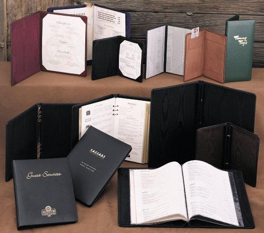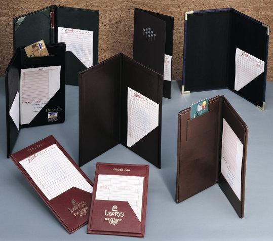 * Options: Padded cover (#42G/H/I), stitching (#42U), pen loop (#42T), and turned edge pocket (#42V). You have a choice of diagonal or horizontal pockets on pocket menu covers and guest checks.