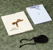 ■ The Media Kit box will make an impact when your presentation includes many different sized items or a large collection of folders. The large Media Kit box will accommodate a regular binder and more. The small Media Kit box will still accommodate a smaller binder and more. All boxes are made of heavy black board with the lid attached to the back. Styled like a leather bound collection edition, the