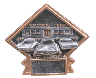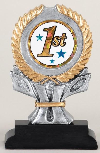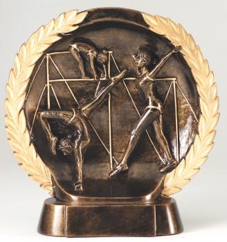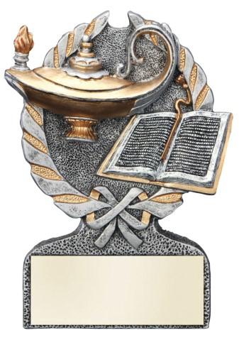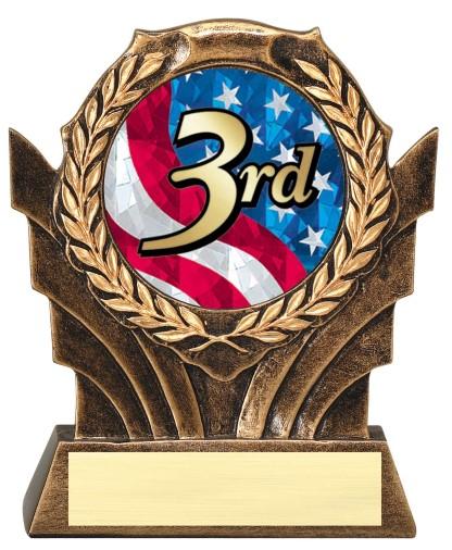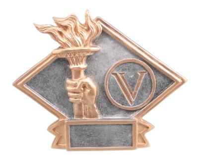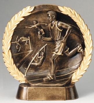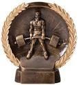 HIGH RELIEF CIRCULAR BRASS PLATE AWARDS Bronze finish with gold highlights. 7-1/2” tall and the price includes a laser engraved plate approximately 3/4” x 2-1/2”