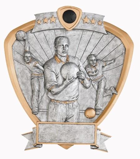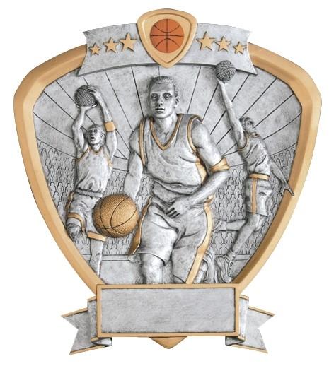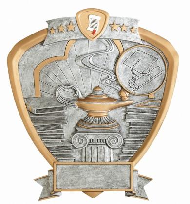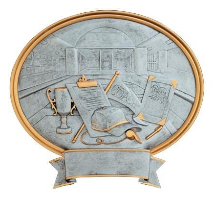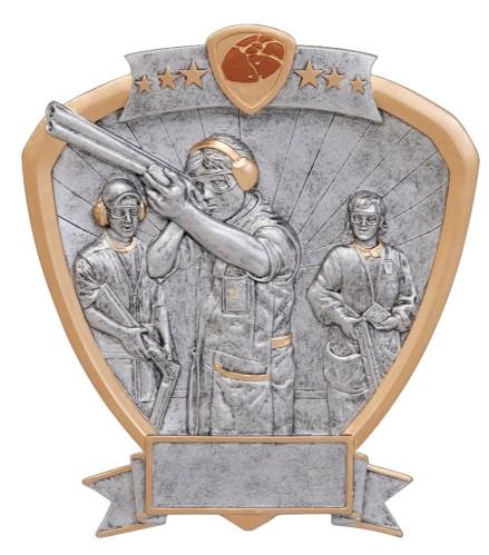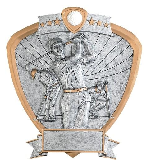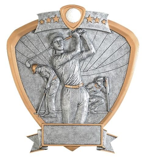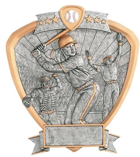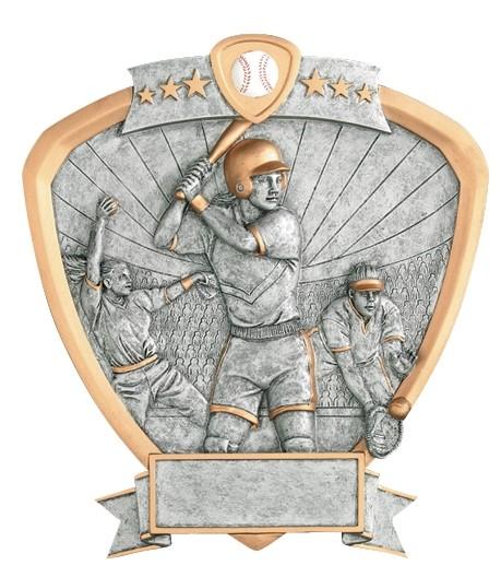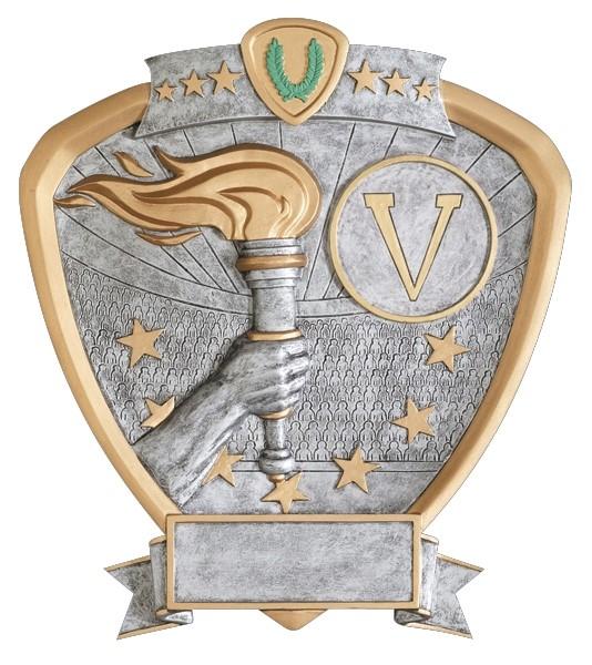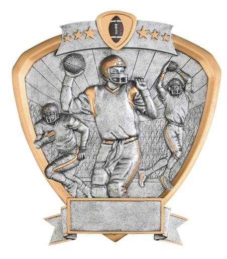 The highly detailed figures are handsomely framed in a shield shaped pewter and gold plaque with colored icon at the top of the SHIELD. All shields on this page are 8-1/2” and include a laser engraved plate approx. 3/4” x 2-1/2”