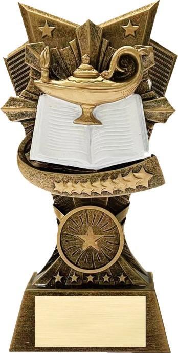 Star Series Resins are 6” tall. Price includes an engraved plate approximately 2-3/4” x 3/4”.
