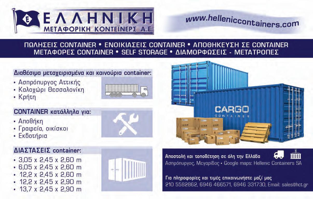 ψυγεία container όλων των τύπων 13,5m – 12m - 6m - 3m σε όλη την Ελλάδα, προς πώληση και ενοικίαση. Πιστοποιηµένη µε ISO 9001: 2008 από τον φορέα διαχείρισης BUREAU VERITAS. Η εταιρία µας σας ευχαριστεί για την εµπιστοσύνη που δείχνετε γιατί η καλή συνεργασία βασίζεται πάνω στις ανθρώπινες σχέσεις.