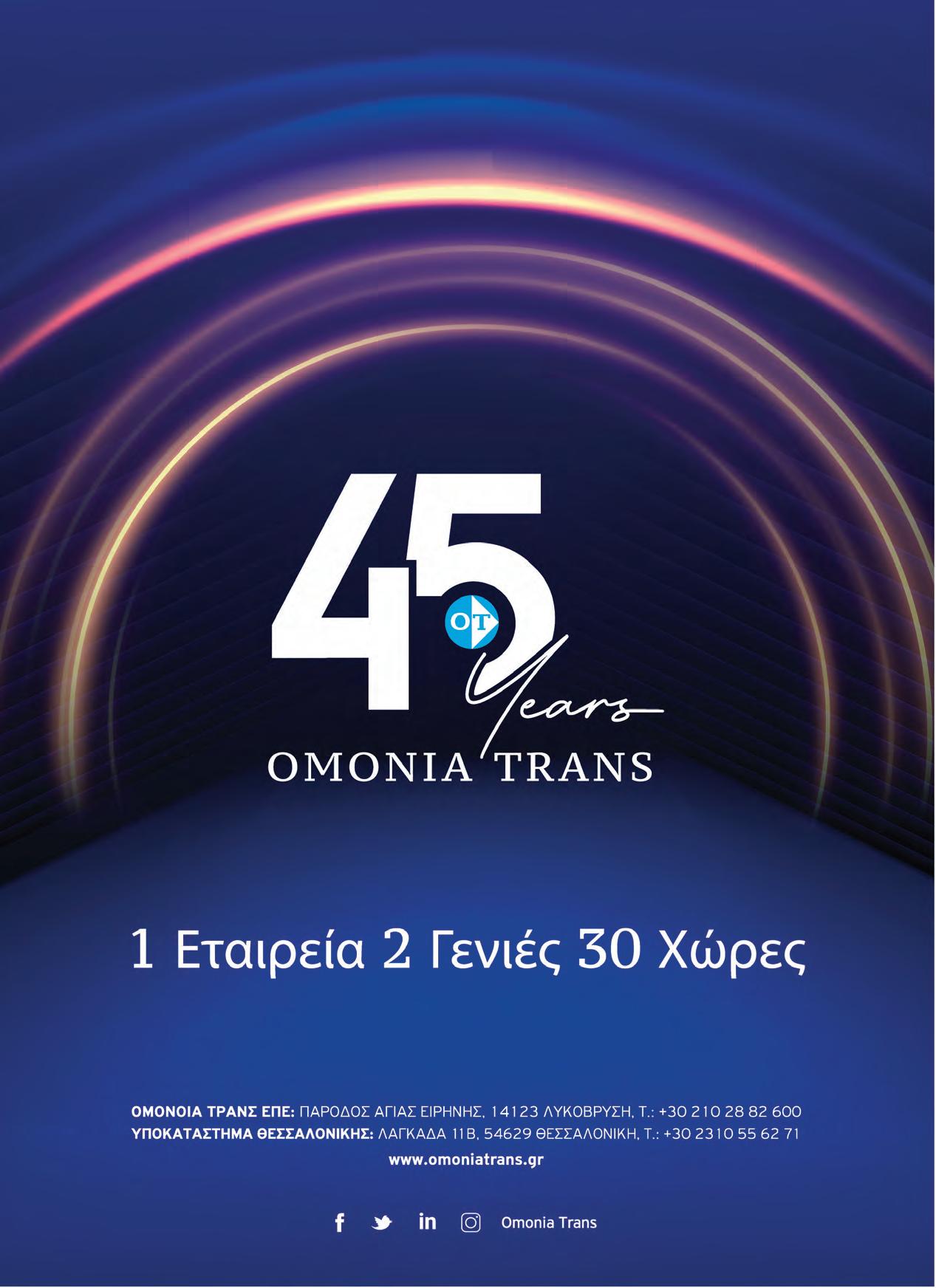 Πάροδος Αγ.Ειρήνης, Τ.Κ.14123, Λυκόβρυση Τ. 2102882600 • F. 2102882628 www.omoniatrans.gr • info@omoniatrans.gr