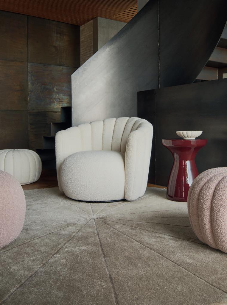 “Balance large pieces of furniture, such as the curved Bergamo sofa, across the space to create visual harmony”, says Kok Nielsen.