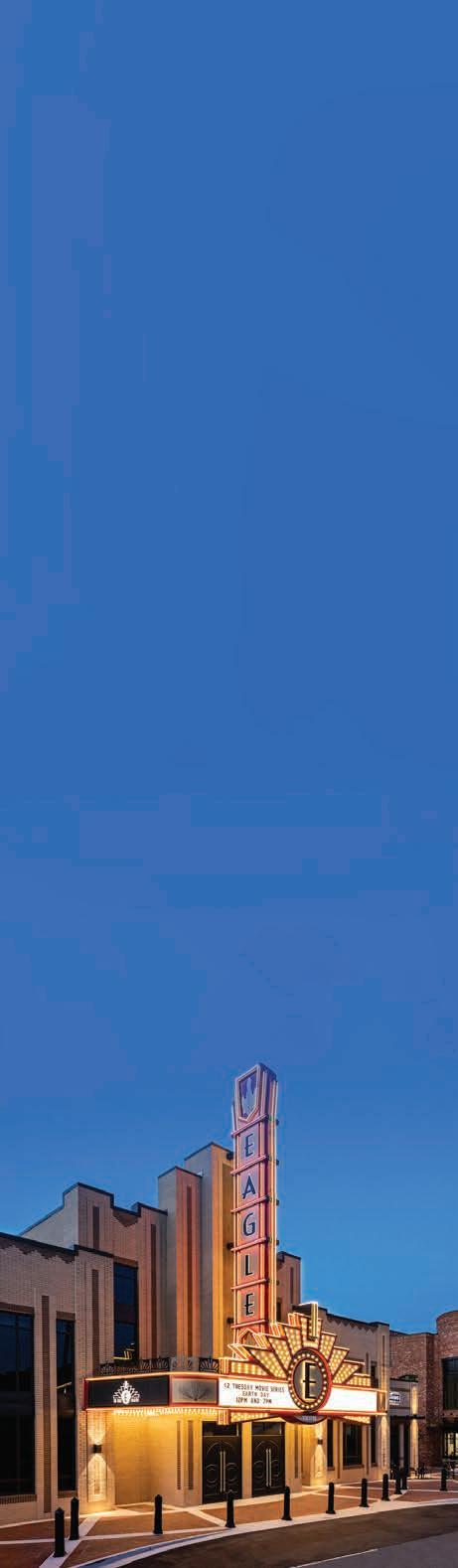 uilt in 2018, The Eagle Theatre’s architectural styling is a throwback to the early days of the City of Sugar Hill. The art deco look of the theatre is characterized by geometric shapes, rich colors, and exquisite gold accents. With 406 seats, the Eagle is perfect for intimate performances as well as nationally touring shows. Several performance troupes and programs call the theatre home. Whether it’s a community event, rental, or concert there’s something going on in the Eagle Theatre nearly every day of the year.