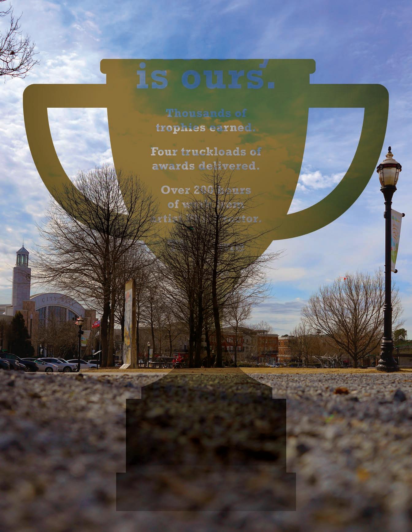 Over 200 hours of work from artist Phil Proctor. The time has come The City of Suwanee Ultimate Participation Trophy Unveiling April 29 | 1P Join us all weekend at the Suwanee Arts Festival! April 29-30